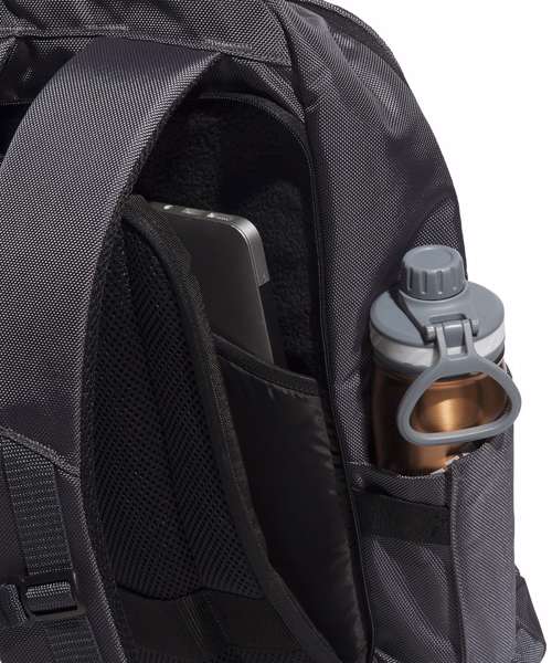 A multipurpose day pack for golfers made in part with recycled materials. Front zip and slip-in side pockets. Laptop sleeve and padded adjustable shoulder straps with chest strap. Top and side carry handles.