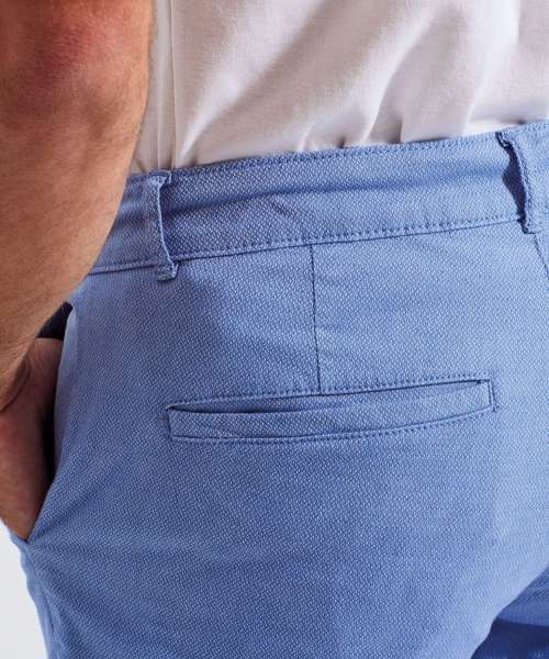 Men’s chino shorts with two swing pockets and two back jet pockets. Zip fly and button fastening to the front. Belt loops. Drawstring detailing. Product contains no branded neck label. Removable Kimble or looped garment tags. Inner seam label holds important product information on one label with a second label containing brand information which can be cut-away. Please note old stock may contain a fixed branded label.