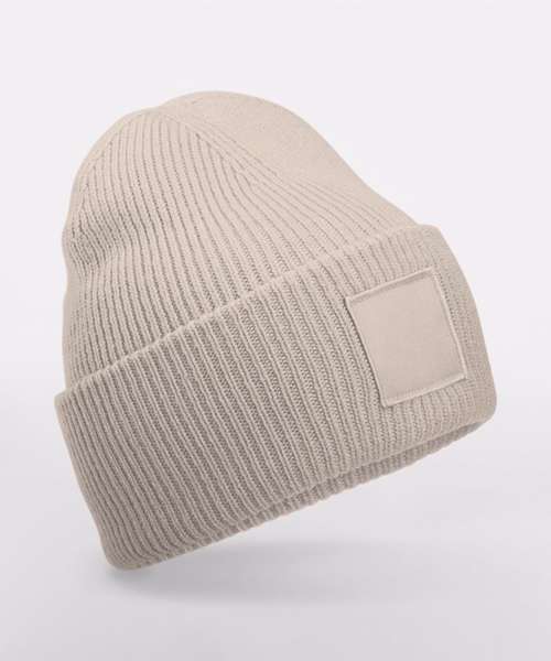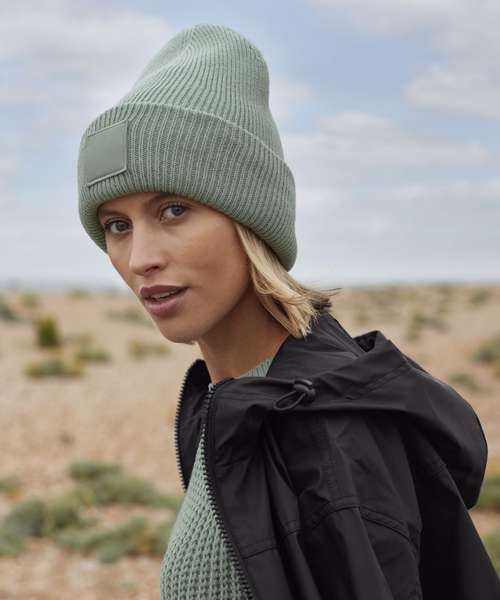 A Beechfield signature, this versatile beanie completes any off-duty look. The engineered crown makes for maximum comfort, while a double-layer knit and oversized turn-up cuff provide optimum warmth. Features include rib knit and a tonal, self-coloured square patch – the perfect place to make a statement. Contains certified recycled polyester.