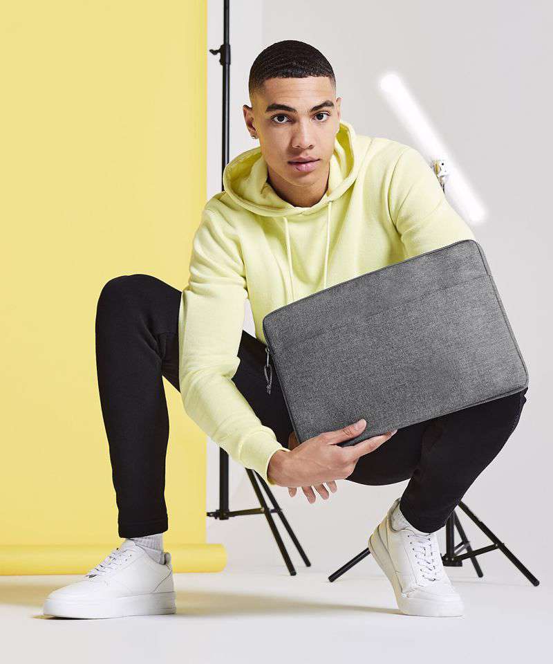 BagBase introduces its essential 15" laptop case as part of a slim line range of modern accessories. This monochrome tech case features a TearAway label for easy rebranding, with unlimited space for decorative techniques.