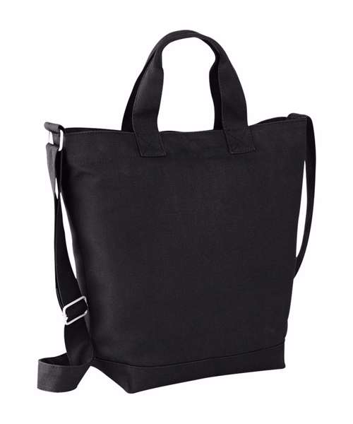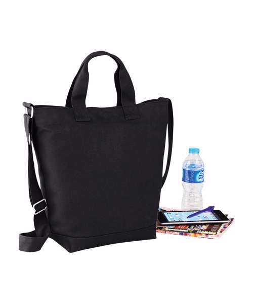 Unisex styling. Adjustable self fabric shoulder strap. Internal valuables pocket. Press stud closure. Handle length 37cm.
