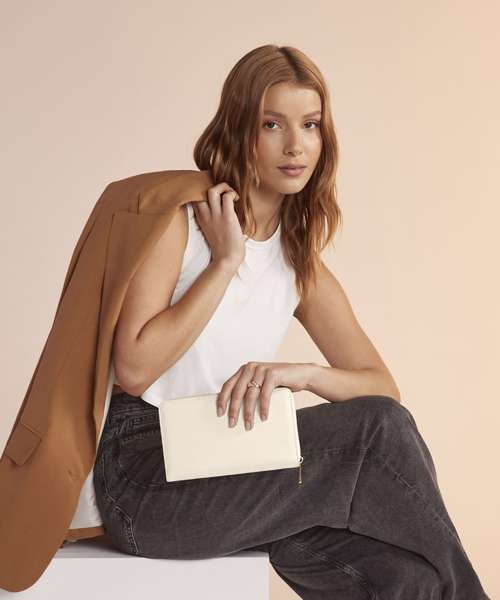 Protective velvet lining. Saffiano fine grain. Necklace compartment. Four secure necklace hooks. Detachable earring organiser. Ring holder. Two secure zip pockets. High-shine gold metal zip. Designed to store rings, earrings and necklaces.
