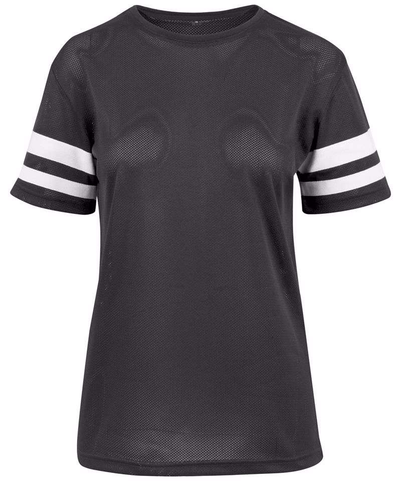 The look of the Women's mesh stripe tee is clearly inspired by the typical sports jersey. But thanks to the classic t-shirt cut and extra-fine mesh fabric, it has an even better fit than its model. The anti-static mesh is particularly suitable for screen printing and light flex print. This item is manufactured in a FAMA Certified factory. FAMA stands for Facility and Merchandise Authorisation and is a high standard production certificate.