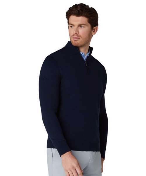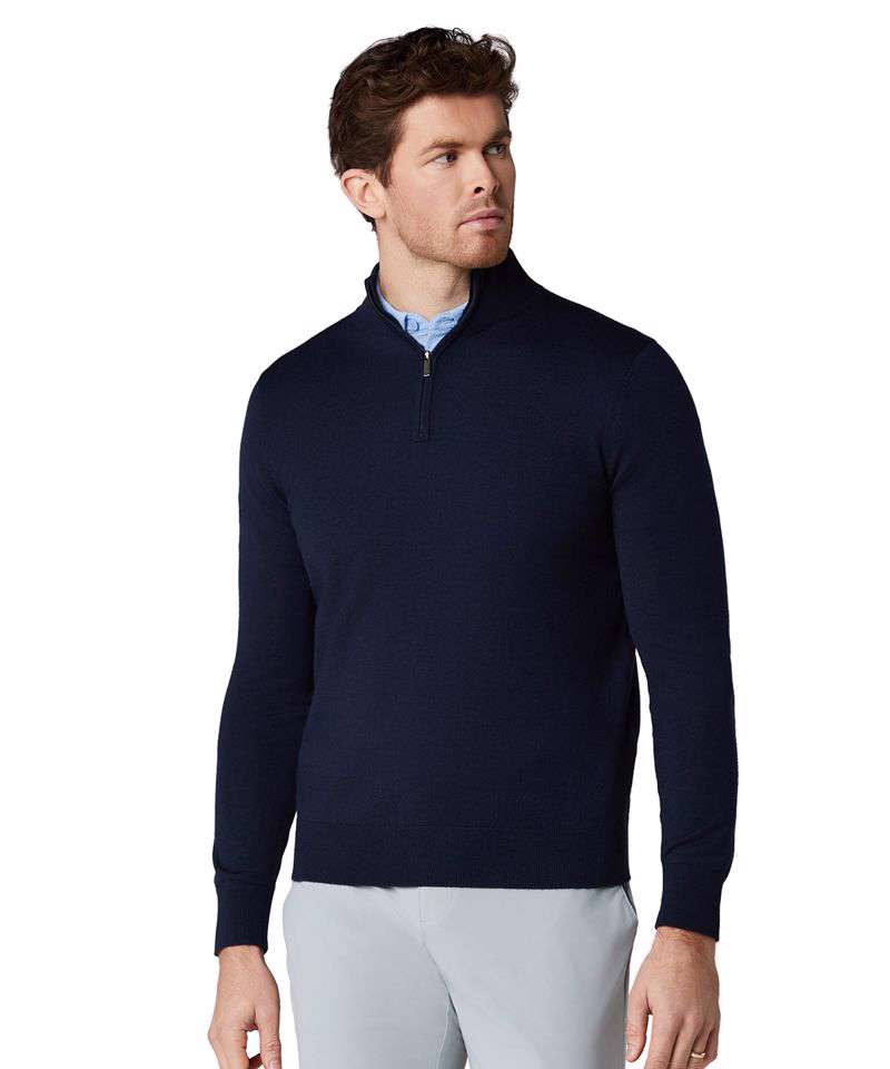 1/4-zip merino blend sweater. 1/4-zip closure. Thermal. Mock neck.