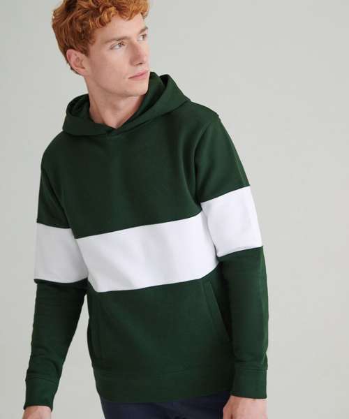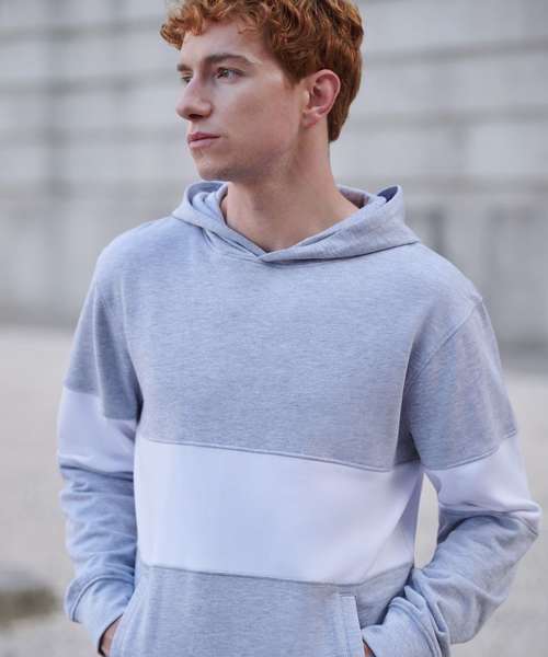 Slightly oversized fit. Heavyweight brushed back fleece. Made with recycled polyester. Panelled area across torso and sleeve in contrasting colour. Ribbed sleeve cuff and hem. Two side welt pockets with an inner kangaroo pocket. Two-piece hood. Single Jersey lining. Tag-free for easy rebranding.