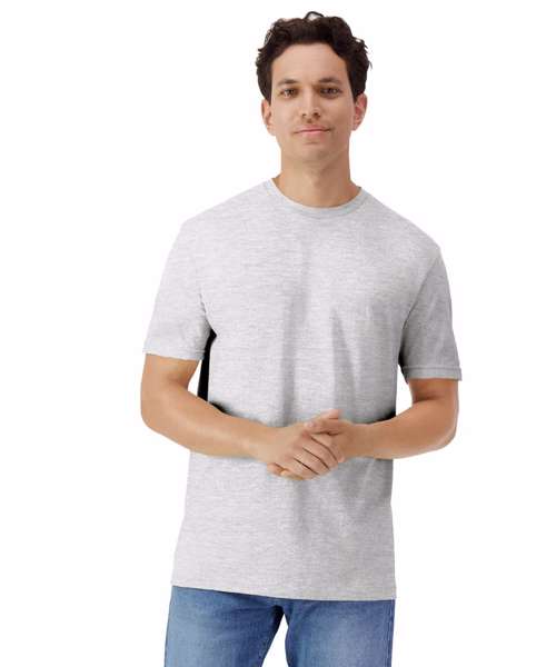 High-stitch density fabric made from 30/1 cotton. Narrow width rib collar, taped nexk and shoulders. Modern classic fit, seamless body with a TearAway label.