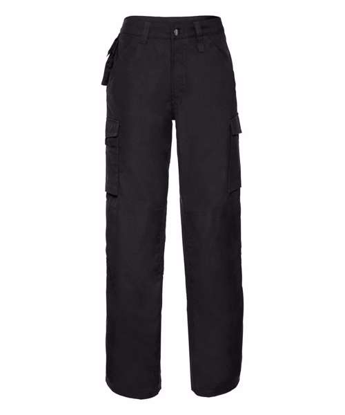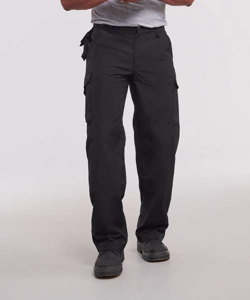 Suitable for 60°C wash and tumble dry. Stain resistant Teflon® coating. Internal pockets for knee pads. Triple stitched pocket opening and in seams for additional strength. Phone pouch below waistband. Cargo pockets on legs with multi compartments. 2 back pockets, 1 open, 1 with flap and hook and loop fastening for easy access. YKK zip.