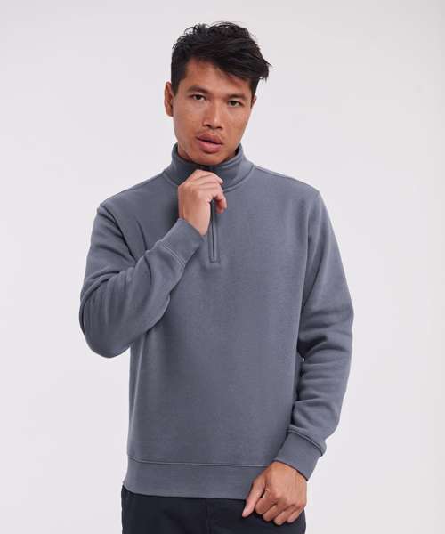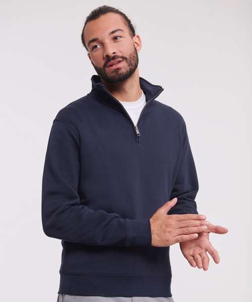 Contemporary fit and modern design. Outer 100% cotton layer provides the best surface for decoration. Herringbone neck tape for comfort and stability. Slimmer shoulders and leaner arms with front facing shoulder seams. Wider hem and cuff constructions. Cover seam armholes, cuffs and hem. Side seams improve fit. Brushed fleece. Kissing (covered) zip for full cross body decoration. Self-fabric cadet collar. YKK metal (Antique Silver) ¼ zip.