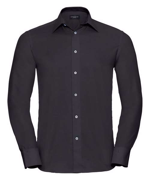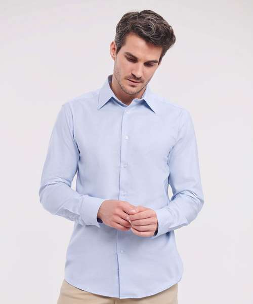 Ultra smart Oxford shirt now has tailored and classic fit options for gents and an elegant tailored fit for ladies, in a high quality Oxford fabric with excellent finish. Contemporary, tailored fit with stiffened semi-cutaway boned collar. Stylish, rounded edge 2 button adjustable cuff, with option for cuff links. Rounded hem.