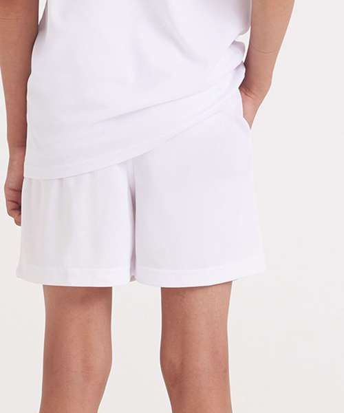 These kids’ shorts feature an elasticated waistband; a mesh lined inner, side pockets for storage, sweat wicking Neoteric™ fabric and plenty of room to move during sporting activities.