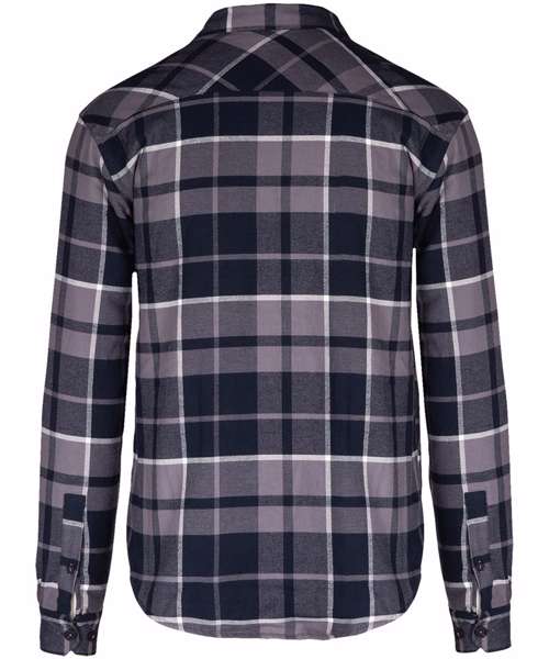100% cotton flannel. Sherpa-lined body in 100% polyester. Lined and padded sleeves in 100% polyester taffeta. Very soft and warm shirt jacket. 2 flap chest pockets. Classic button placket. Adjustable buttoned cuffs. Rounded hem. No brand label at neck, only size tag for easy relabelling. Certified STANDARD 100 by OEKO-TEX® N° CQ 1007/8, IFTH.