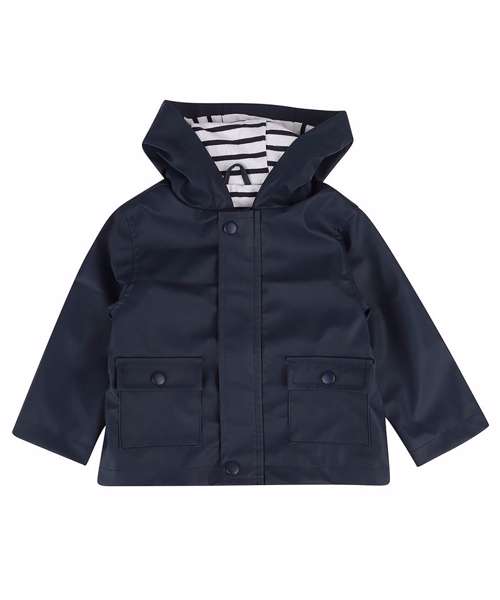 For the puddle jumpers, try the rain jacket with charming striped single Jersey lining and available in bright colours.