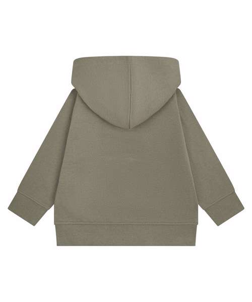 Kids’ hoodie made in recycled fabric with self-fabric knitted rib at hem and cuffs. Open placket at centre front. Tag-free.