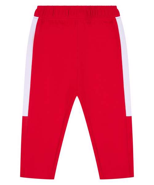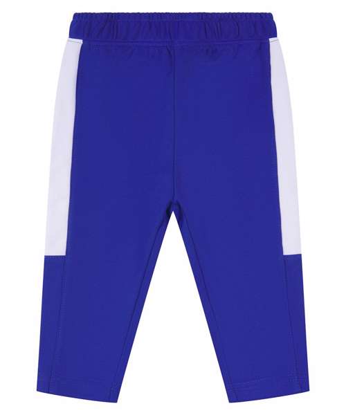Kids' track bottoms with contrast panels down the outer legs. Elasticated waistband. Plain hem.
