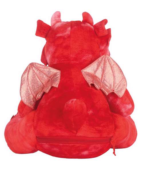 Soft, plush Zippie red dragon with contrast wings and claws. Sewn eyes and mouth. White panel on the tummy, perfect for decoration. Zip access on base provides direct access to the tummy for decoration. Fully removable stuffing, including headpiece. Can be embroidered, DTF, vinyl and sublimation printed. Complies with EN71 European Toy Safety regulations. Remove all hang tags and their fasteners before giving to a child. Suitable for all ages.