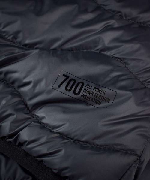YKK Metalux main zip. Side pockets with hidden zip. 700 fill power. Water-repellent finish (Bionic Finish® ECO).