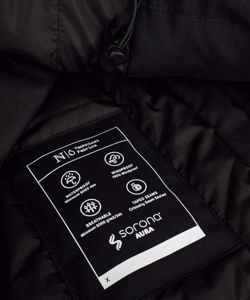 Outer fabric: 100% Recycled polyester with PU coating. Lining: 100% Recycled polyester. Padding: 100% Polyester: Sorona® Aura