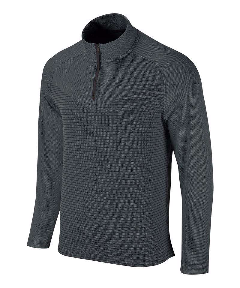 Nike Dri-FIT ADV technology combines moisture-wicking fabric with advanced engineering and features to help you stay dry and comfortable. Raglan sleeves eliminate shoulder seams to increase comfort and reduce fabric bunching through your swing. The hem vents are set at a slight angle so you can easily layer it over a polo or another baselayer. The half-zip lets you vent out extra heat, or it can keep the cold away during chilly tee times. The textured zip pull is easy to grip with a glove on. The zip guard at the top of the collar feels soft and smooth beneath your chin. Standard fit for a relaxed, easy feel.