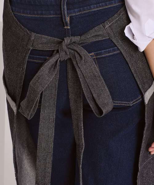 Made entirely from regenerated denim, and woven on hand looms in a low-powered carbon factory, this cotton apron has a great more sustainable story to tell! The fleck effect is testimony to the recycled denim fabrics that this apron was created from. It features two slanted side pockets with contrast trim and a knotted neckband that can be adjusted for height. Super-soft to touch, with a linen feel.