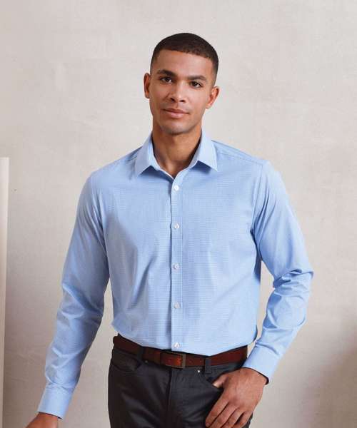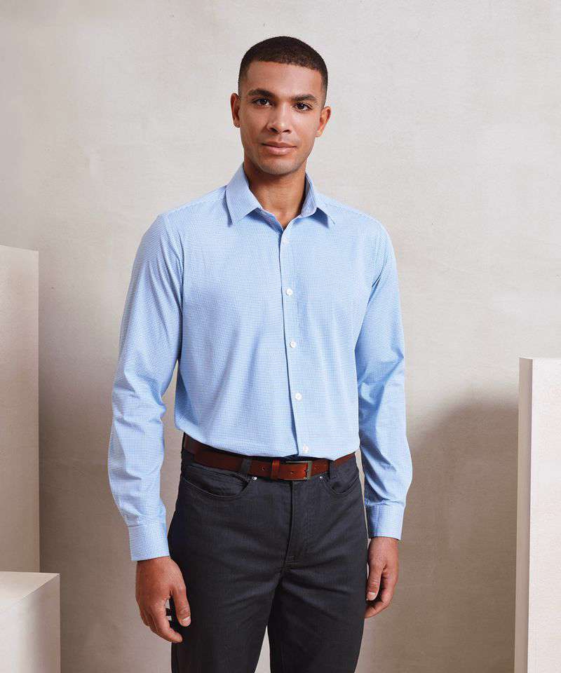 PR220: Microcheck (Gingham) long sleeve cotton shirt
