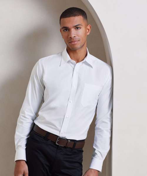 Premier’s long sleeved men's Signature Oxford comes in a cotton rich, Oxford weave fabric. Its semi-fitted styling and back pleats give a tailored look, presenting a professional front for your business. Classic features include buttoned down collar and left chest pocket with the overall classic Oxford weave appearance.