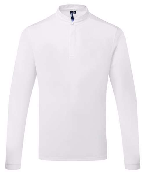 Long sleeve shirt in Premier’s moisture-wicking, breathable Coolchecker® fabric. Mesh back panel provides ventilation and airflow. Banded neckband with single press-stud button. Mandarin collar stand. Covered placket with two press-stud buttons. Press-stud button to the reverse to hold an apron in place on the neckband. Pen pocket on the upper left sleeve. Ribbed-knit cuff for a neat finish on the wrist. Slide slits on the hemline. Made with 100% certified recycled polyester.
