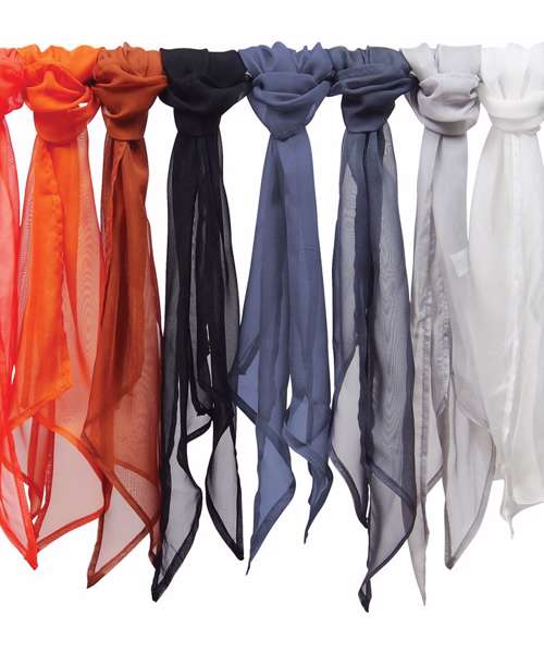 A great accessory for ladies to wear on the neckline, these light and lustrous chiffon scarves can be worn in a number of ways.