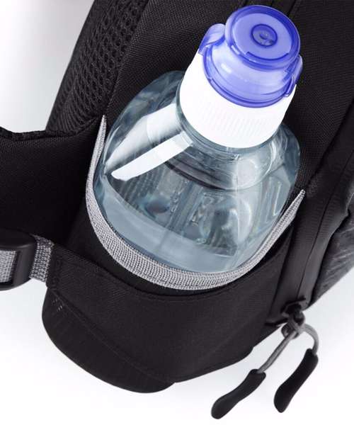 - Water-repellent designLight attachment loopTwo mesh water bottle holders