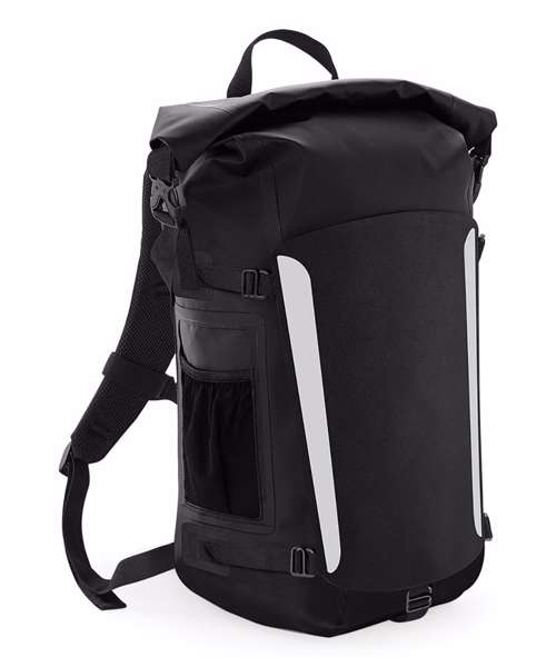 Secure roll-top and clip closure system. Waterproof Zip. Dual sided EasyPanel™ for decoration. TearAway adhesive fabric label. EasyPanel™ for decoration. Innovative, tough durable design. Compression straps. Enhanced visibility reflective accents. External mesh pocket. Ergonomic breathable padded mesh back panel. Padded adjustable mesh shoulder straps. Grab handle.