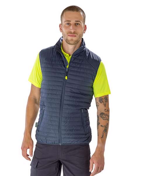 Soft bound elasticated armhole and hem. Zip pockets. Contrast colour lining and detail. Hangtag. Full-zip with chin guard. Dupont™ Sorona® insulative filling. Easy pack with excellent recovery. High heat retention. Ultra lightweight. Ready to brand - tag free.