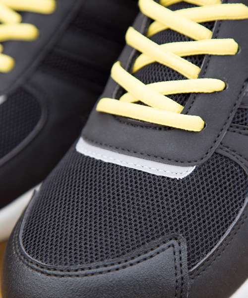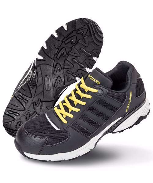 Lightweight SP1 Safety Trainer. EN 20345:2011 S1P SRC. Upper: High Quality PU with Durable Mesh. Toe Guard: Rubber. Toe Cap: Composite. Mid Sole: Composite. Outer Sole: EVA/Rubber. Laces Yellow/Black. Spare laces: Grey/Yellow and Black/Grey.