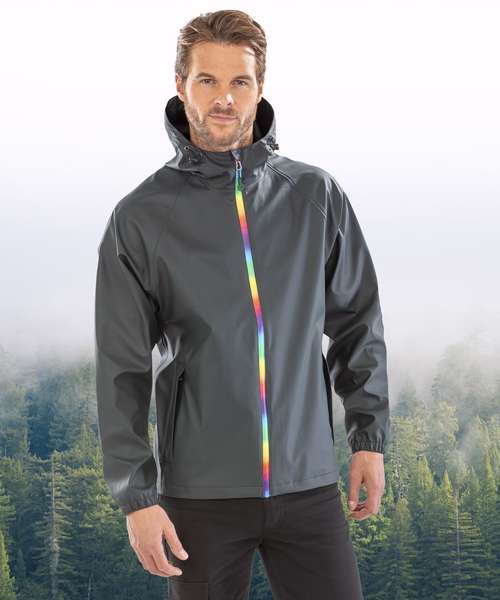 A classic-style waterproof jacket with a bold technicolour zip – wear it with pride!