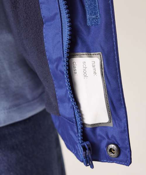 Windproof with taped seams and studded and hook and loop fastening stormflaps with concealed hood and fleece lined collar. Elasticated cuffs and 2 zipped lower pockets and an inner pocket. Printed name label inside with a concealed zip entrance in lining for embroidery access.