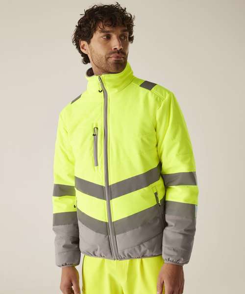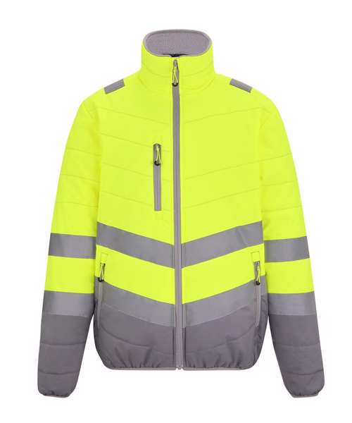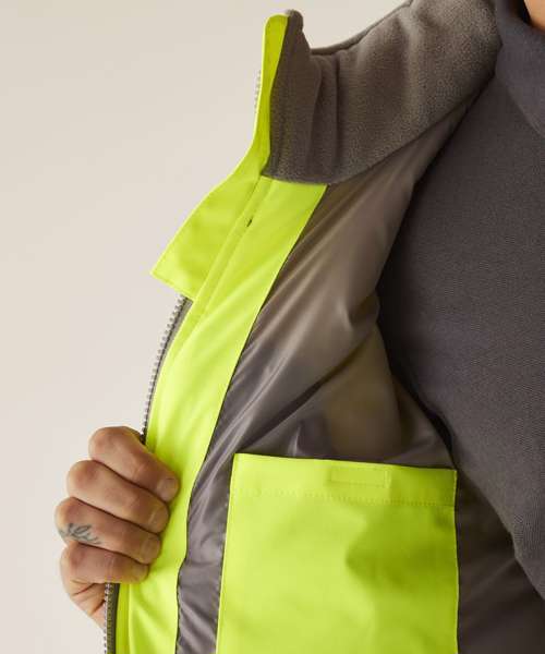 Stay visible and protected in the Hi-vis two-tone thermal jacket from Regatta Professional. Crafted with durable Hydrafort polyester and waterproof to EN ISO 20471 Class 2 standards, it’s built to perform in demanding conditions. Thermoguard insulation adds dependable warmth, while angled ID reflection chevrons improve visibility in low light.