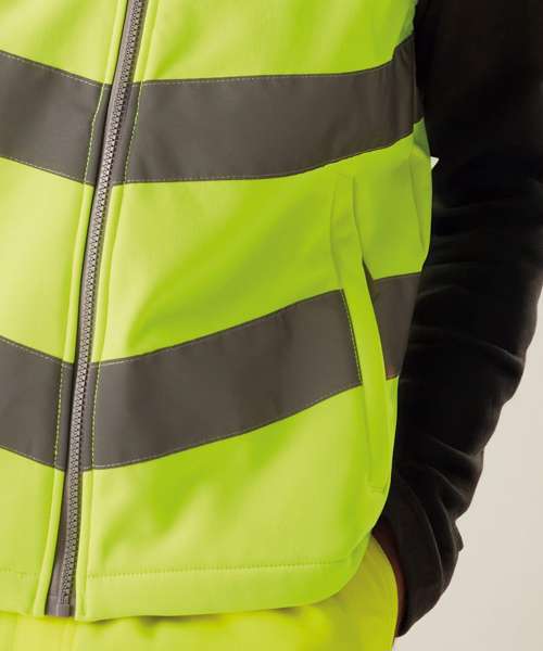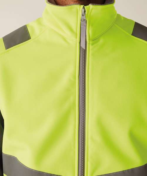 The Hi-vis Pro contract Ablaze softshell bodywarmer, from Regatta Professional, delivers durable comfort and certified visibility. Made with warm-backed softshell fabric, it’s EN ISO 20471:2013 + A1:2016 Class 2 compliant, with RIS-3279-TOM certification on orange styles. Featuring lower zipped pockets, a fleece-lined collar and a zip guard.