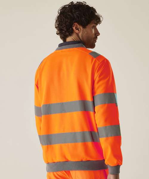 The Hi-vis Pro contract crew neck sweatshirt, from Regatta Professional, delivers comfort, visibility and durability on the job. It’s made from brushed polyester fleece and features a classic crew neck and ribbed trims. Certified for safety.