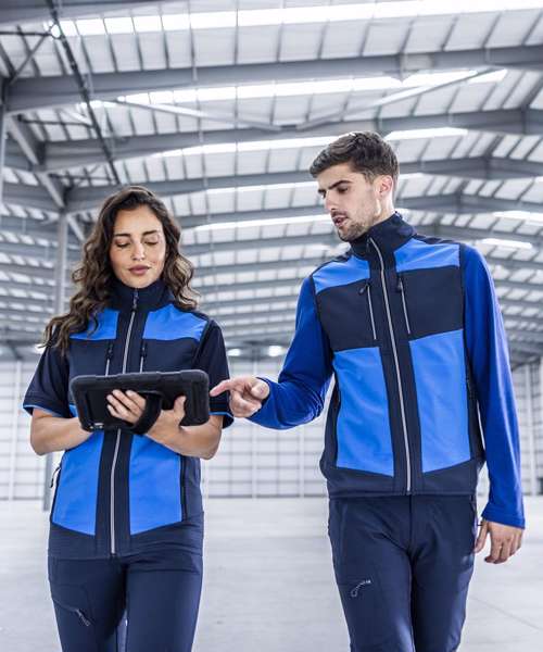 The E-Volve unisex 2-layer softshell bodywarmer, from Regatta Professional, is your go-to work layer. Made with stretch softshell fabric that protects from the double threat of wind and rain, it also keeps you agile, enabling you to get on with the job without restriction. The chest area is perfect for personal branding. REACH, GRS certified fabric and ETI compliant factory certified.