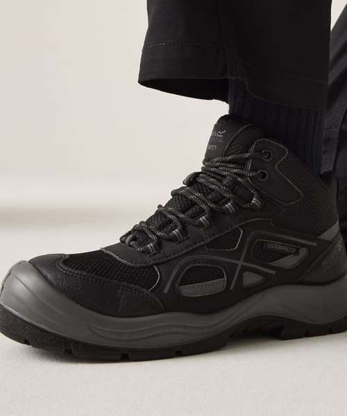 Stay protected on-site in the Limestone S6 waterproof boots. Featuring a steel toecap, a water-resistant endurance mesh upper and a mid-cut collar for ankle support, these men’s work boots are built for tough environments. They’re finished with a TECFOAM insock for day-long comfort, while reflective detailing provides added visibility. Safety certified.