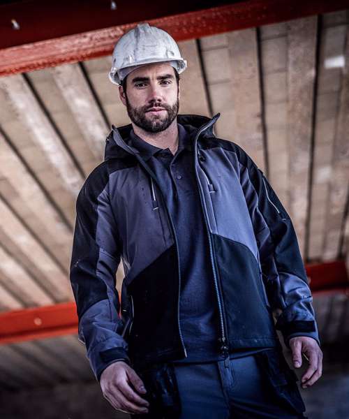 Warm-backed woven Softshell XPT waterproof and breathable 3-layer membrane fabric. Breathability rating: 10,000g/m²/24 hours. Durable, water-repellent finish. Hard-wearing stretch ripstop panels for added durability. Reach Technology – underarm gusset for maximum range of movement and unrestricted arm lift. Reflective details for enhanced visibility. Made using recycled materials.