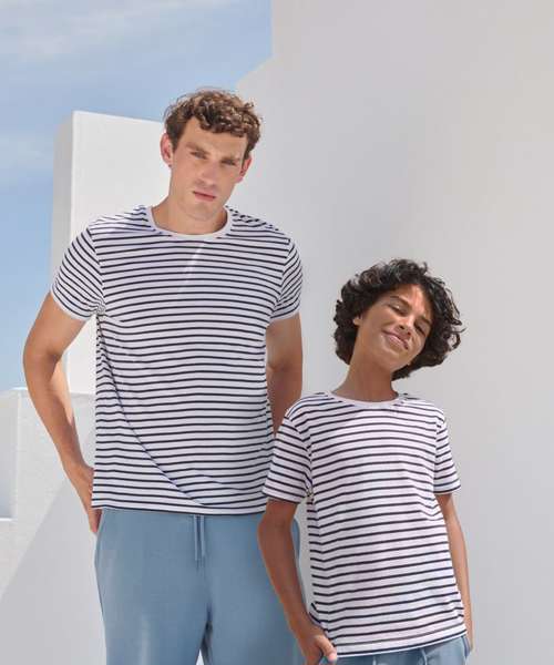 You can't go wrong with stripes. Fun. Impactful. A modern classic. Made with quality striped cotton Jersey, this soft-touch unisex striped T has a regular body fit to suit all shapes. The stretch rib neck and back neck tape ensure a premium finish. The tear-out label can be removed for rebranding.