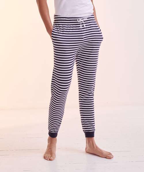 Stretch lounge pants with elasticated waistband and drawcord. Self-fabric cuffed hem with side seam pockets. Tear-out label.