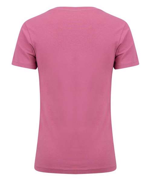 Feel good women's stretch t-shirt with enzyme wash for unique soft hand-feel. 96% cotton, 4% elastane for improved fit, comfort and shape retention. Modern long-line fit. Crew-neck with back neck binding and soft stretchy rib neckline. Features tear out label.