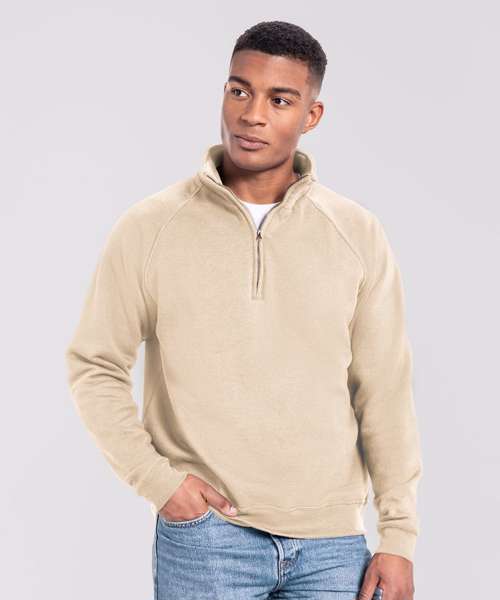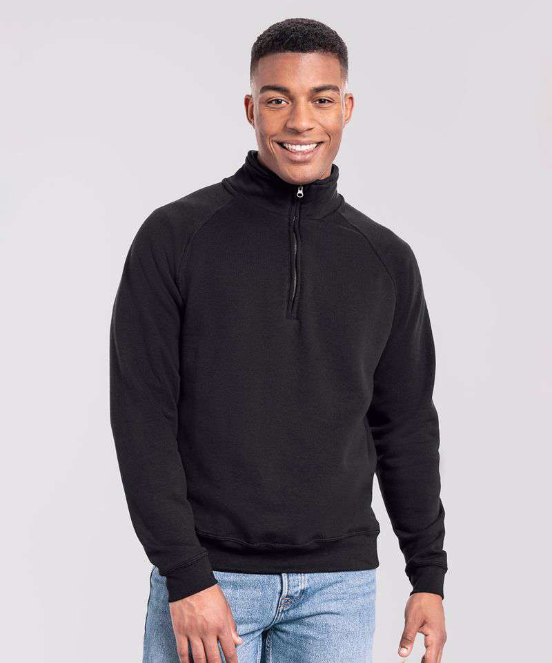 Classic fit. Cadet collar. Covered metal zip for enhanced printability. Tear-away label. Soft 100% combed ringspun cotton face for best decoration results. Brushed inner fleece. 1x1 rib at cuffs and hem with Lycra for superior comfort. Made with CiCLO® fibres.