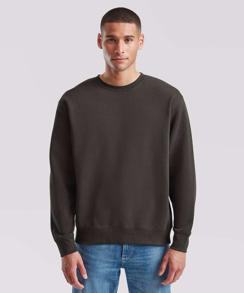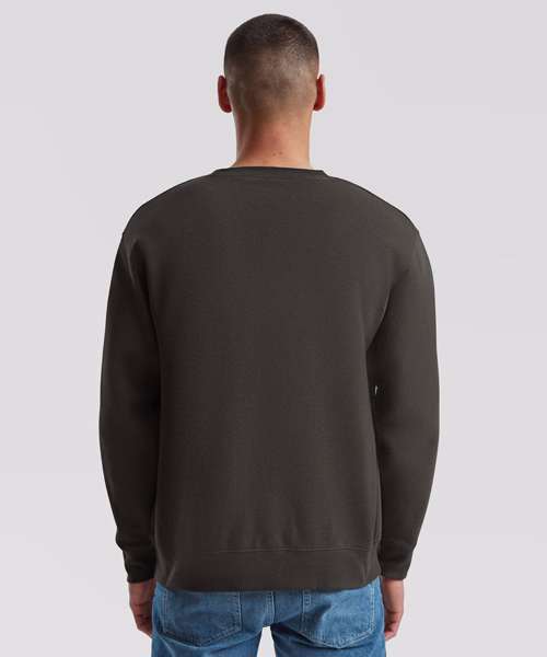 With a 100% cotton face ensuring perfect printing and embroidery results and a range of colours to choose from, Fruit’s Premium set-in sweat is suitable for all kinds of application. This super-soft garment features an inner brushed fleece and single Jersey back neck tape for comfort, while the cotton/elastane neck, waist and cuff ribs provide added warmth.