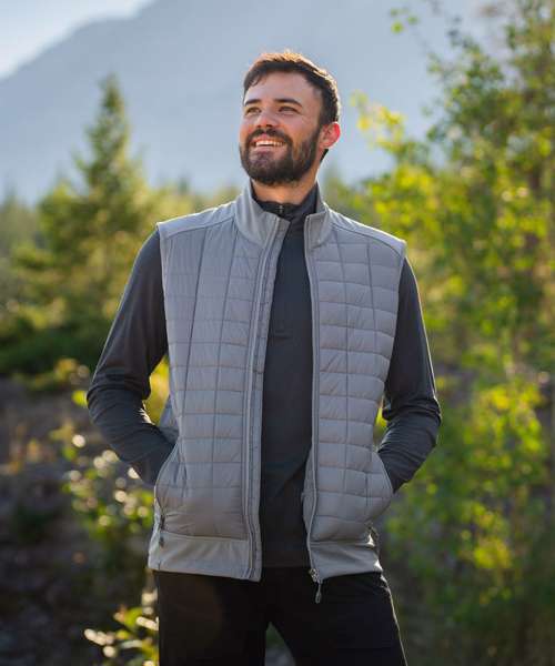 Flexible, versatile, thermal efficiency. The Appalachian thermal softshell vest is ideally suited for all-season use, with a lightweight quilted Thermolex™ body and four-way stretch softshell panels. The durable water-repellent finish fabric on the main body helps to repel water in damp conditions, while the brushed tricot internal storm flap and adjustable hem with drawcord allow adjustment for maximum comfort. Built with recycled polyester and polyester fabric with 10% spandex to provide stretch mobility.