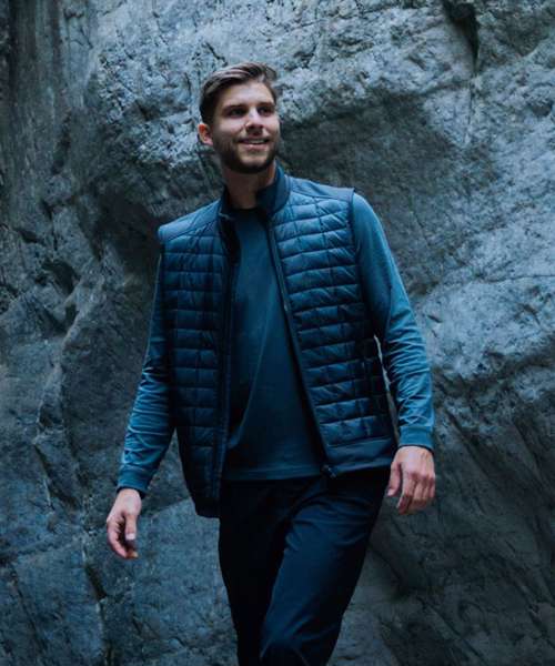 Stormtech Thermolex™ high-loft synthetic down. Durable water-repellent finish. High-performance windproof outer shell. Bonded stretch softshell panels. Elastic armhole trim. Adjustable hem with drawcord. Zipped handwarmer pockets. Internal full-length storm flap with brushed tricot. Decoration access. Contains recycled polyester.