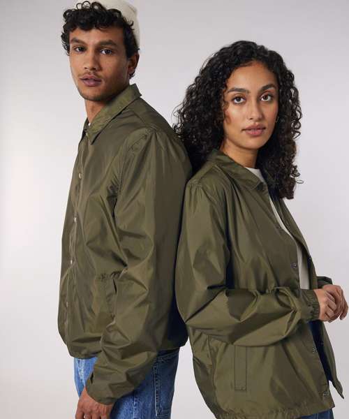 Welt pockets at front. Round drawcords at bottom hem in matching body colour, with metal tipping. Semi-elastic sleeve cuff. Inside chest welt pocket. Self-fabric half-moon at back neck. Inside zip opening at bottom hem and wearer’s left chest for easy decoration.