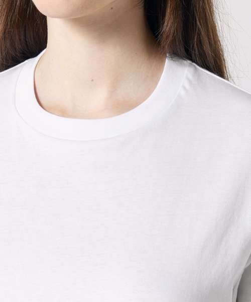 The women’s boxy t-shirt. Relaxed fit. Set-in sleeve. 1x1 rib at neck collar. Inside back neck tape in self-fabric. Narrow twin-needle topstitch at sleeve cuff and hem.