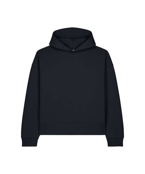 Unisex recycled cotton boxy hoodie. Set-in sleeves. Double-layered hood in self-fabric. 1x1 rib at sleeve cuffs and hem. Twin-needle topstitching on seams at shoulders, armholes, sleeve cuffs and hem. Inside herringbone back neck tape. Self-fabric half-moon at the back neck. Contains 50% GRS-certified recycled cotton and 50% OCS-certified organic cotton, certified by Control Union CB-CUC-1393082.