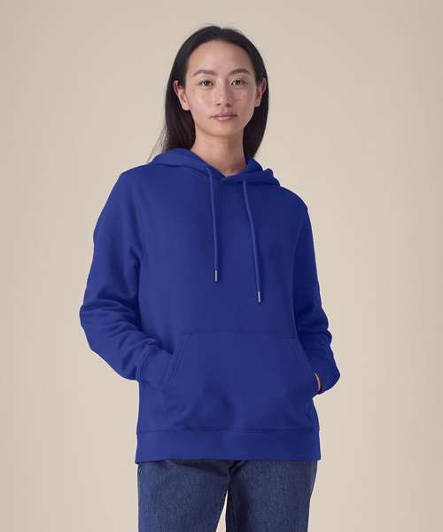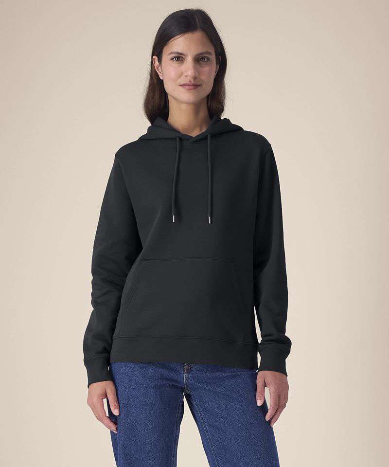 The Stella Gamechanger is a women’s recycled hoodie crafted from a soft recycled cotton blend. With its clean, medium fit, it’s ideal for corporate branding, lifestyle collections and everyday wear. It features a double-layered self-fabric hood, metal-tipped drawcords and embroidered eyelets for a refined finish. Twin-needle topstitching at the cuffs and hem ensures durability, while the kangaroo pocket and herringbone back neck tape offer comfort and practicality. Designed for decoration, this sustainable hoodie provides a smooth surface for print or embroidery in timeless, customisable style.